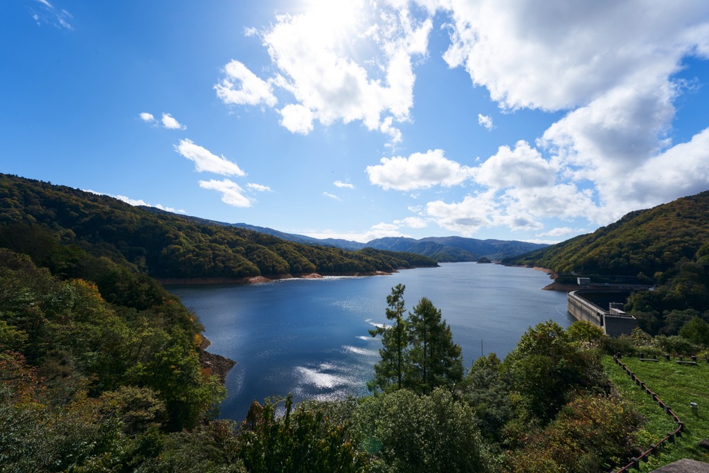 立山連峰の主要峰とも言われる薬師岳の麓にある「有峰湖」は、堤高140mのダムによってできた人工湖
